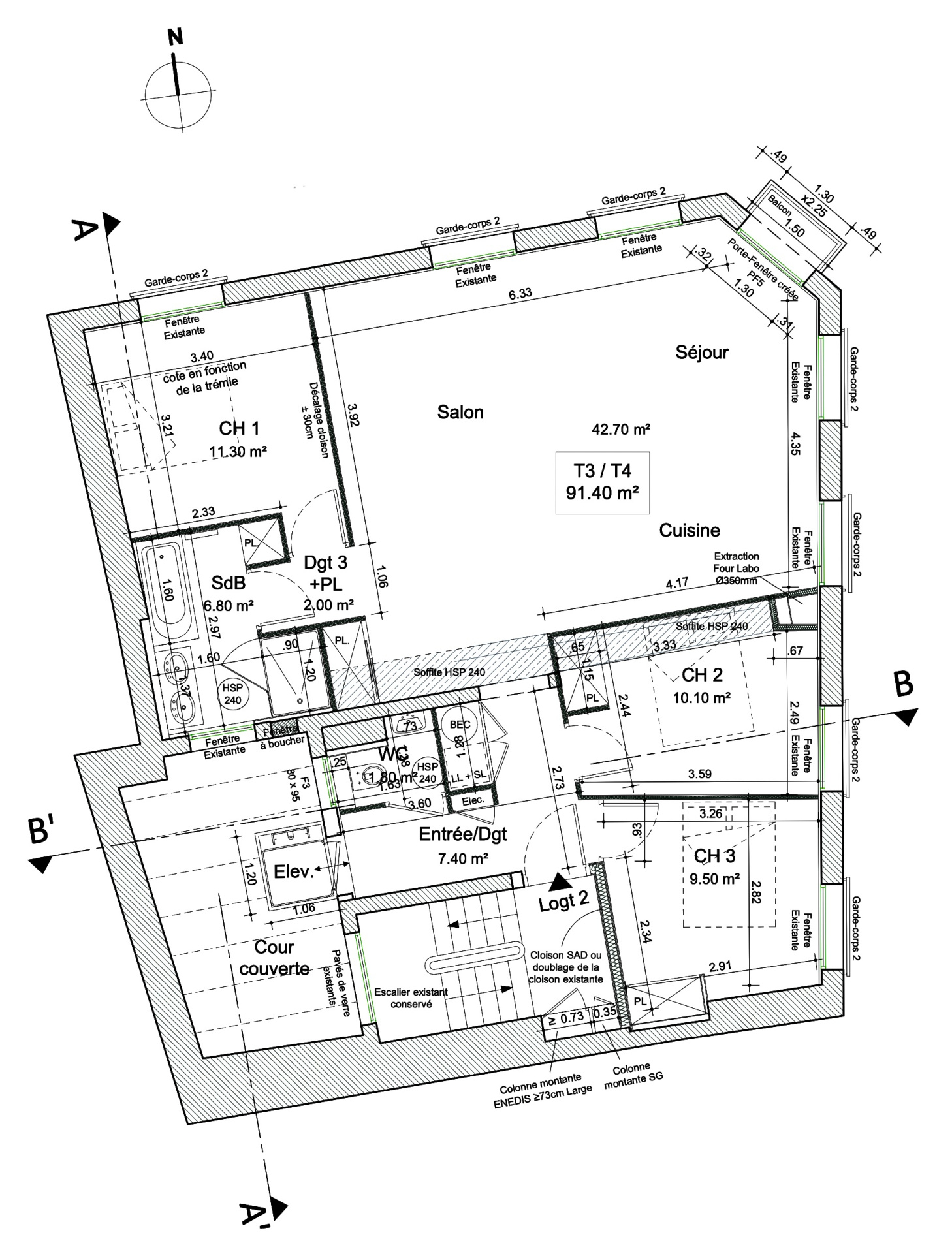 SPACIEUX ET LUMINEUX TYPE 4 RÉABILITÉ EN 2020 COMPRENANT UNE ENTRÉE AVEC ASCENSEUR ET PLACARD