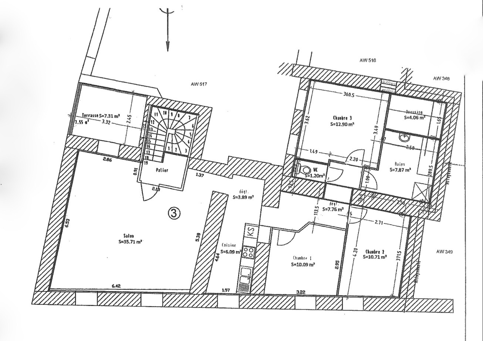 3 CHAMBRES DRESSING SALLE DE BAINS