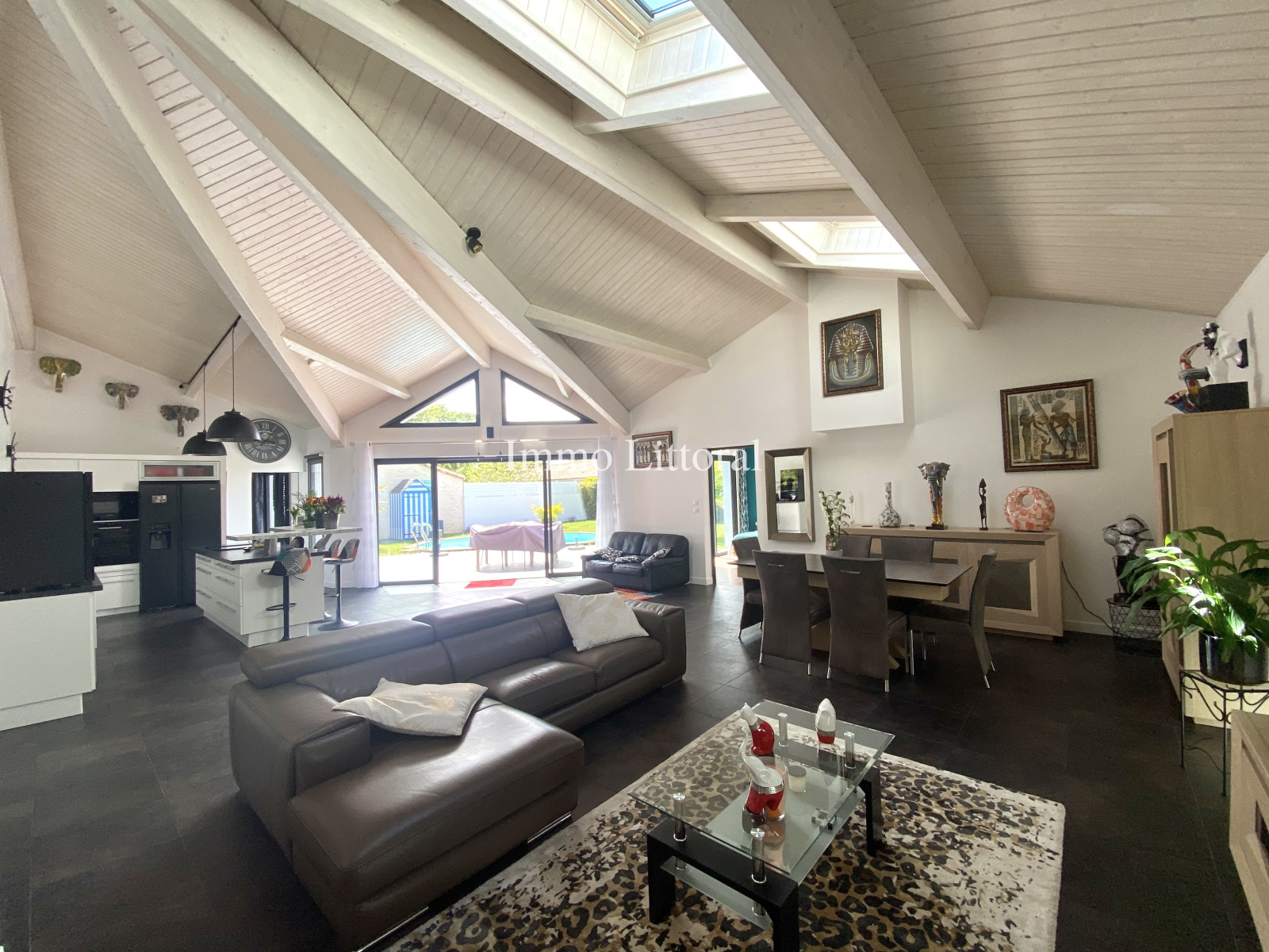 UNE ENTRÉE AVEC PLACARD, UNE SPACIEUSE PIÈCE DE VIE DE 73 M2 AVEC CUISINE AMÉNAGÉE ET ÉQUIPÉE, 3 CHAMBRES DONT 2 AVEC PLACARD ET UNE SUITE PARENTALE AVEC SALLE D'EAU / WC, DRESSING, UN BUREAU, UNE SALLE DE BAINS, UN WC AVEC LAVE-MAINS.